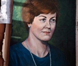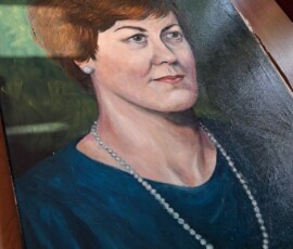Musiałam bowiem namalować portret bazując na jedynych dwóch zdjęciach, jakie posiadali jej bliscy – jedno bardzo piękne, czarno białe, tyle że z młodości. Drugie znacznie późniejsze, kolorowe, lecz bardzo niewyraźne. Oba robione w czasach przedcyfrowych. Cóż było czynić? Musiałam zgadywać. Uciekłam się w tym celu do praktyk spirytystycznych. Ogólnie kiepskie ze mnie medium a i praktykę mam marną, bo mnie w dzieciństwie straszyli duchami. Nie mam tego stolika z literkami i w ogóle. Zresztą literki niewiele by pomogły bo przecież chodziło o obraz a nie opis.